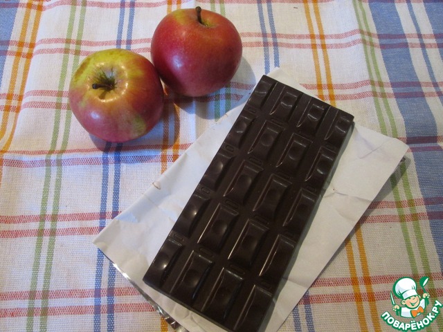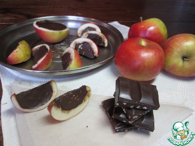 | Очень простой и оригинальный рецепт с необычным вкусовым сочетанием. Яблоко оттеняет и освежает насыщенный вкус темного шоколада. Детям наверняка понравятся такие яблочки))). Приглашаю всех попробовать. |