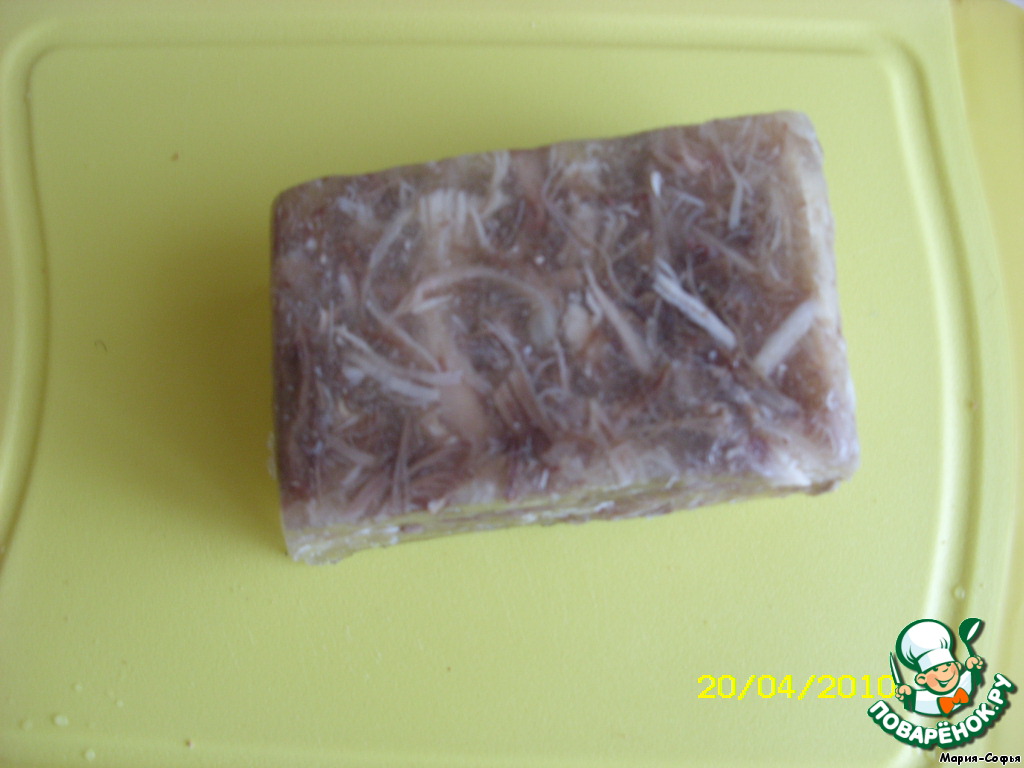 Студень порезать так, чтобы совпадал по размеру с хлебом