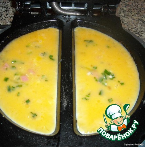 Осталось у меня еще 2 взбитых яйца от вчерашнего омлета, я их залила в сковороду (правда, разбила еще одно), посыпала оставшимися от пиццы огурцами с луком