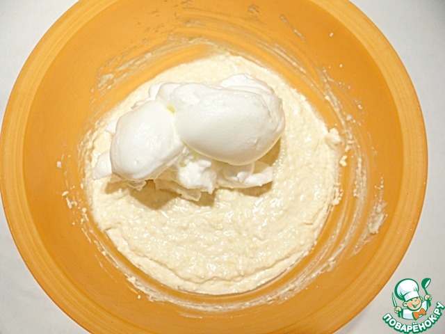 К пшенной массе добавляю взбитые белки, аккуратно перемешиваю лопаткой движениями сверху-вниз.