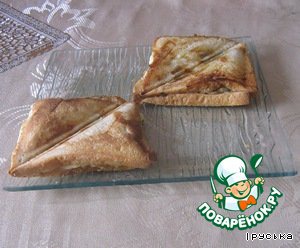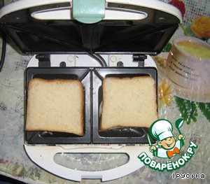 Кладем сверху второй ломтик хлеба. Выпекать 5 минут до золотистого цвета.