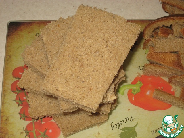 1. Хлеб нарежьте на 6 кусков, горбушку желательно убрать