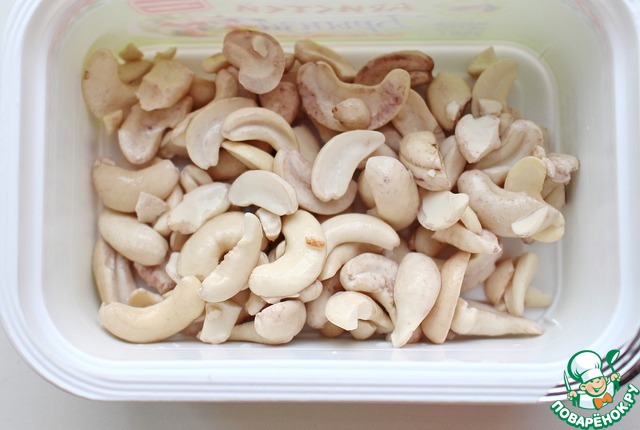 Замочить орехи кешью в холодной воде на ночь. Затем воду слить.