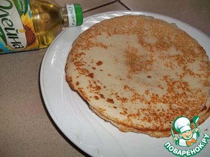 Напечь несладкие блины. Я пекла блины на кефире с использованием растительного масла "Олейна".