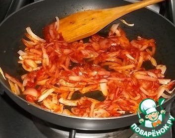 Луковый соус: лук нарезать тонкими четвертинками колец. В сковороде разогреть раст. масло, обжарить лук до прозрачности,