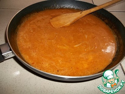 Добавить томатную пасту, пожарить несколько минут, добавить сливки и