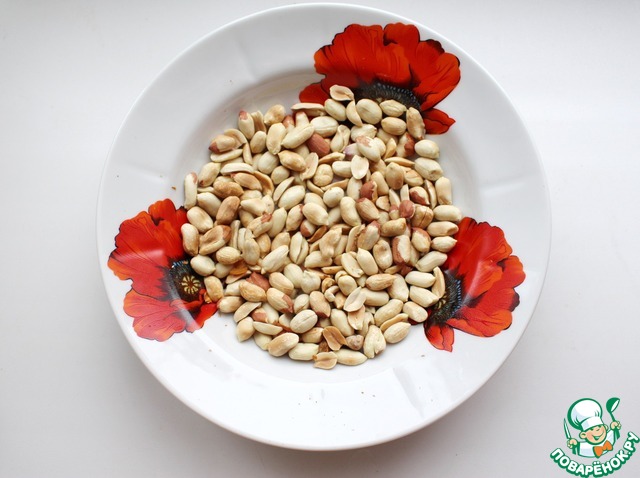 Арахис обжарить в духовке или на сухой сковороде. Дать остыть и почистить.