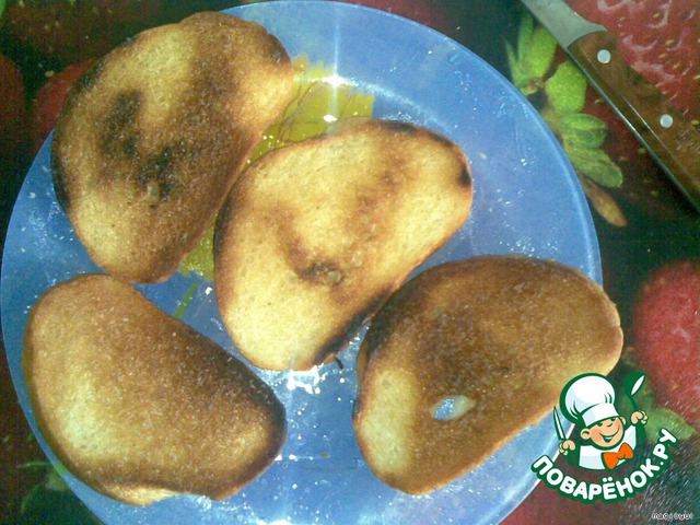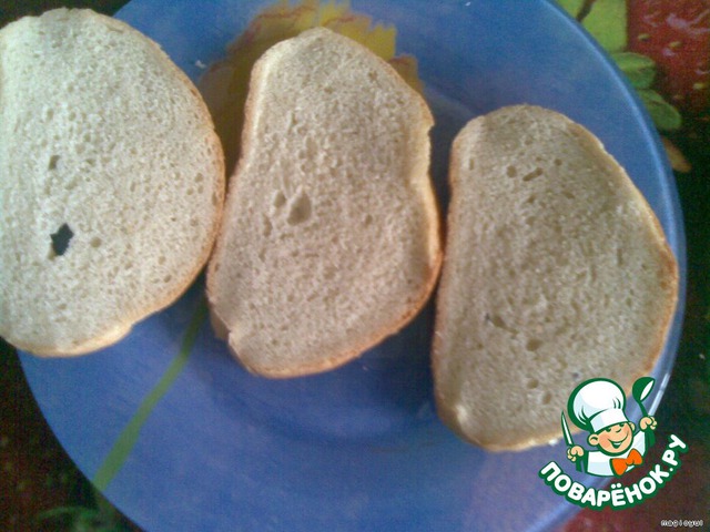 Батон режем тонкими ломтиками