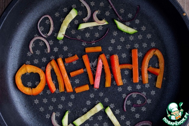 Выложить на сковороду часть овощей и вылить тесто. Жарить блинчики с двух сторон. Можно сделать надписи из овощей, имена, рожицы и рисунки. Это особенно понравится маленьким "нехочухам", отказывающимся есть овощи.