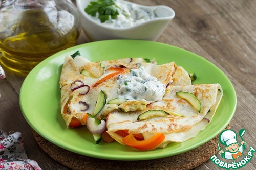 | У многих Масленица ассоциируется с приходи весны. Поэтому и без того солнечные блинчики хочется сделать еще ярче! Блинчики с овощным припеком получаются очень вкусными и красивыми. А легкий соус с греческим йогуртом придает средиземноморский привкус и свежесть. Овощи можно подобрать по своему вкусу. |