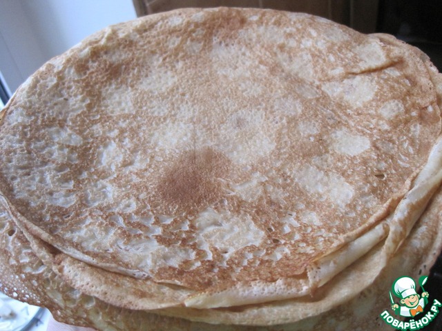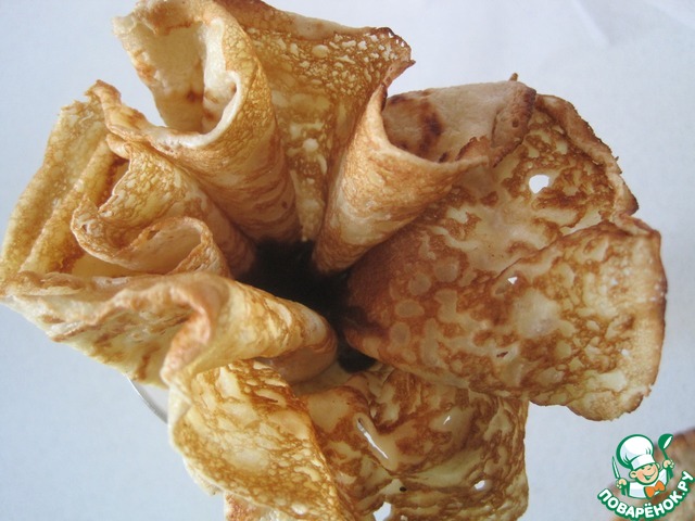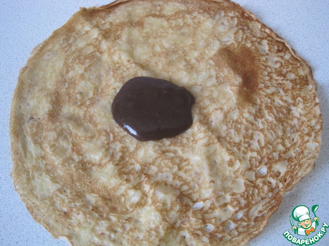 На середину блинчика кладем 1 или 2 ложки соуса.