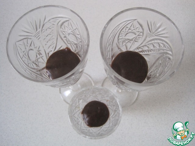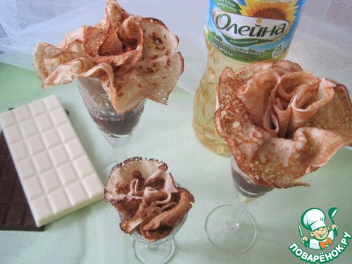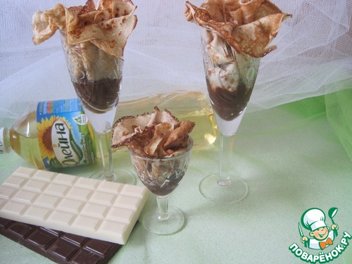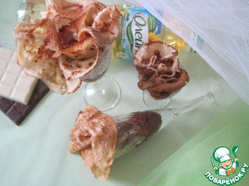 Блинчики будем подавать в бокалах. Наливаем по 1 ложке соуса