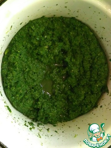Блендером размельчаем крапиву и черемшу в однородную массу.