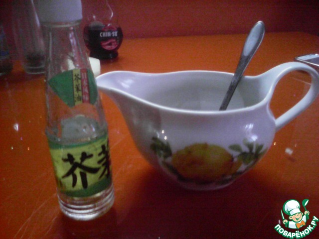 Следом 1 ст. л. острого горчичного масла, опять же если его нет заменяем хреном "Васаби" (продается в супермаркетах для суши), его добавлять нужно понемногу, постоянно перемешивать контролируя остроту соуса.