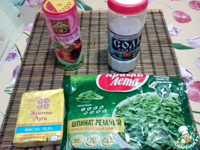 Шпинат отжимаю, тк он мороженный, добавляю специи, затем добавляю мягкое сливочное масло, чеснок и ву-аля, все смешиваю в блендере. Готово! приятного аппетита