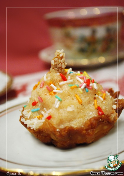 | Тарталетки с десертом из взбитых белков и нежного яблочного пюре. На конкурс "Королева фуршета". |