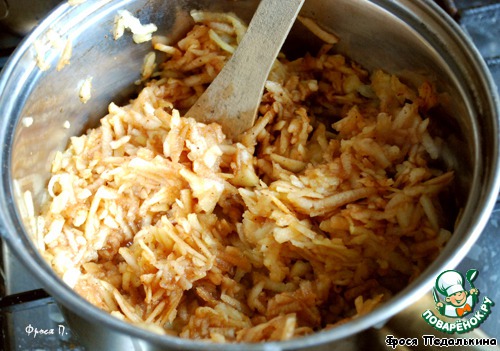Натереть на крупной терке, добавить корицу.Тушить на небольшом огне 10-15 минут, пока не станут мягкими