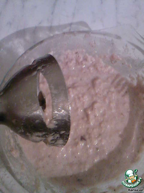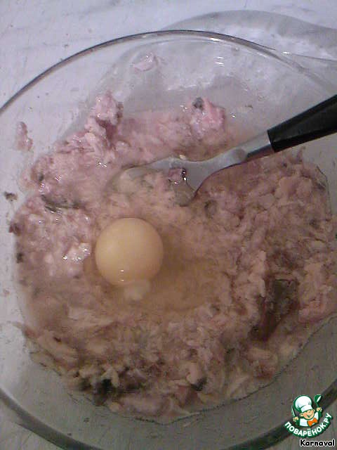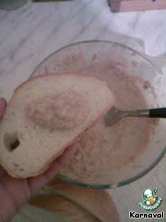 Теперь о способе размешивания: можно размять консерву вилкой, отдельно взбить яйцо и все соединить, тогда смесь не будет "перетертая". Вобщем, кому как нравится.