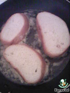 Порезать батон, намазать смесь на кусок. Обычно смеси из баночки консервы и яйца хватает как раз на обычный городской батон.