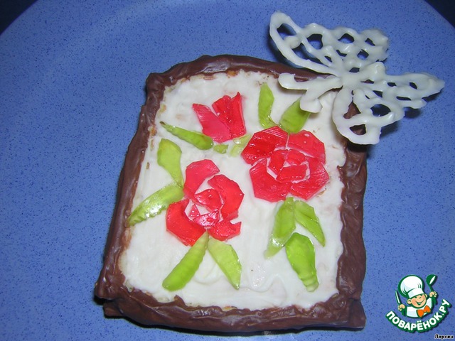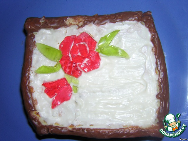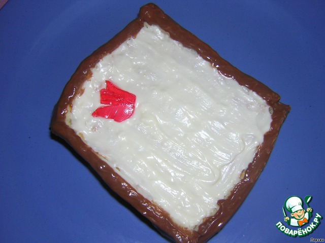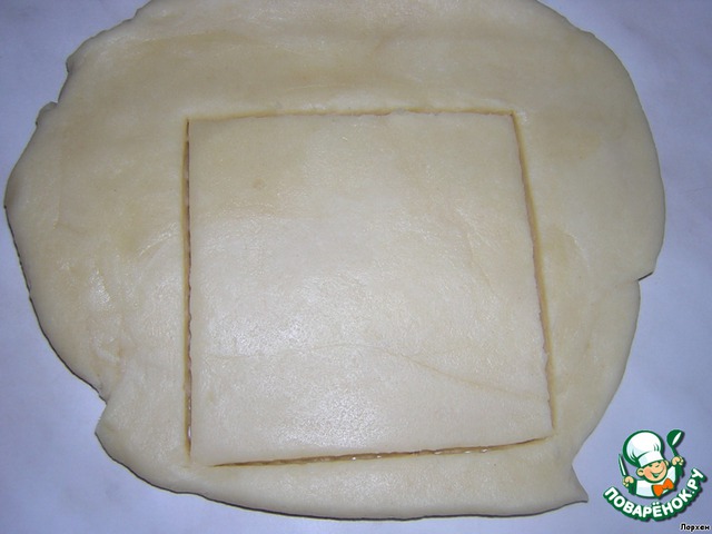 Раскатать его толщиной 2 мм и вырезать квадрат 12х12 см. Сделать бортики из теста шириной 5 мм.