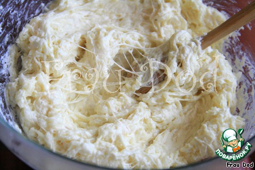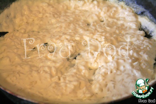 Снять с огня, добавить сыр, хорошо перемешать. Немного остудить.
