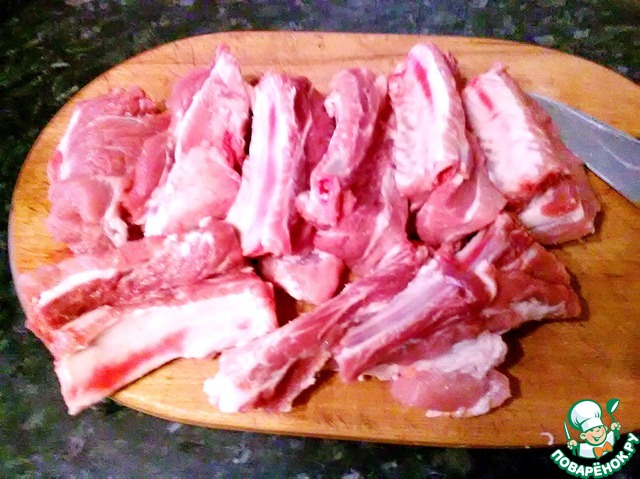 Вот такие замечательные ребрышки мне попались на рынке. Совсем не жирные. Отделяем их друг от дружки, моем.