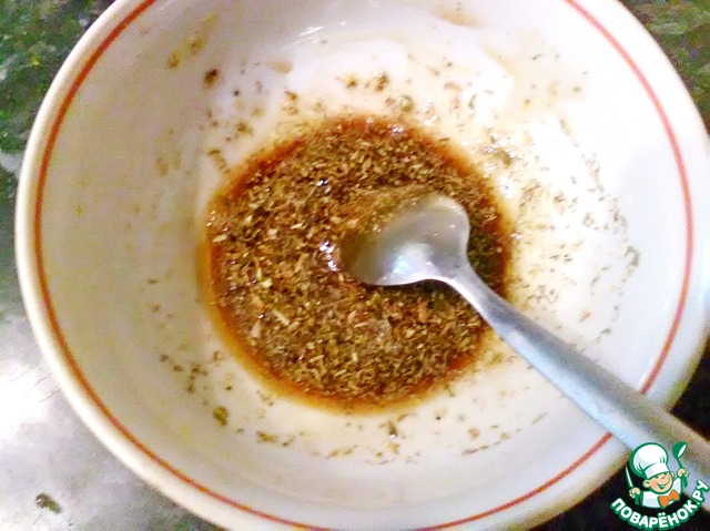 Готовим маринад. Смешиваем мед, соль, соевый соус и специи.
