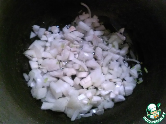 Режем лук и отправляем его тушиться в казан в который наливаем масло.
