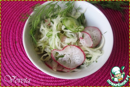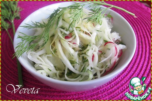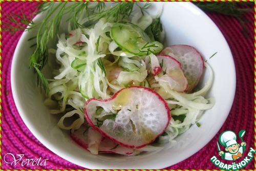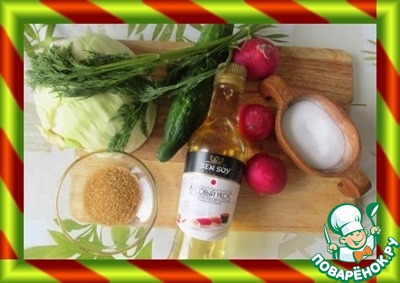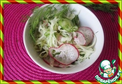 | Вот и до весны дожили! Уже появились свежие весенние овощи: капуста, редис, огурчики. Предлагаемый салат из слегка замаринованных свежих овощей традиционен для японского завтрака. Сложностей в приготовлении никаких нет, ингредиенты просты и хорошо знакомы, доступны. Немного другая технология приготовления, японская. Яркий, свежий, маринованный салат идеально подходит к блюдам из мяса и птицы, прекрасно сочетается с простыми гарнирами, рисом или картофелем. |