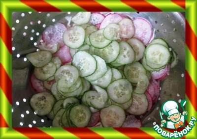 На редис выкладываем огурцы и солим