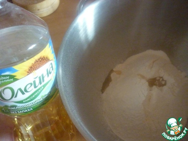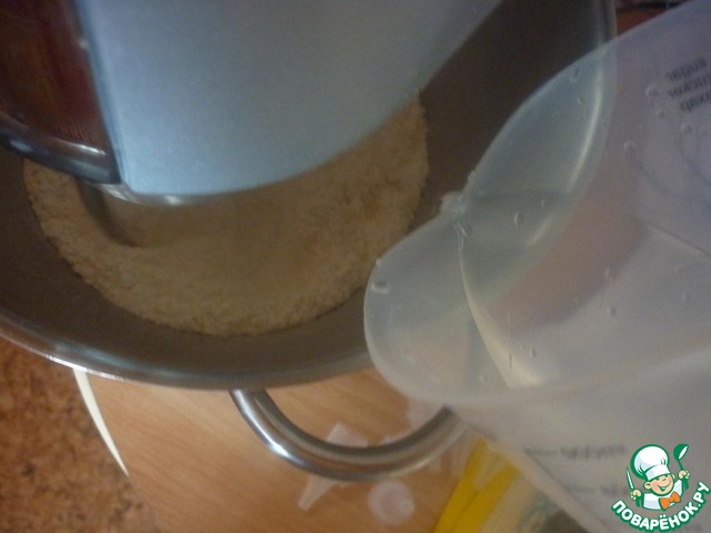 Добавить холодную воду. Замесить тесто (можно руками, а можно миксером крючкообразной насадкой. Оставить "отдыхать"